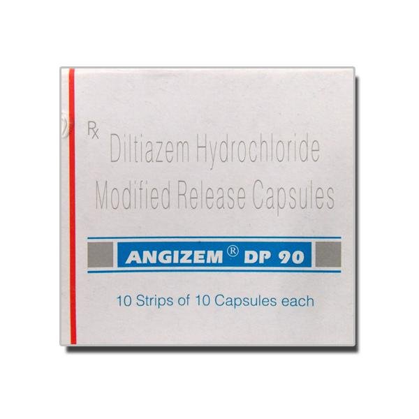 Angizem DP 90 Capsule MR is used to treat angina (heart-related chest pain), high blood pressure and some types of irregular heartbeats (arrhythmia). It is known as a calcium channel blocker. It works by relaxing blood vessels to lower blood pressure. This helps to reduce the workload of the heart.
