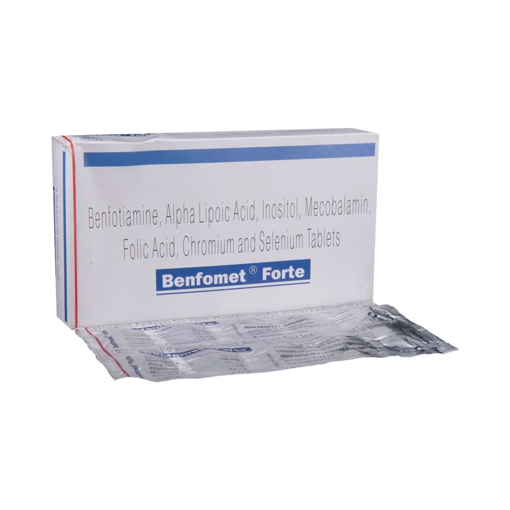 Benfomet Forte Tablet improves the function and conduction of neurons in diabetes. It also works as an anti-oxidant and restores Vitamins levels such as Vitamin E and Vitamin C.