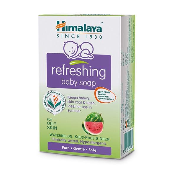 Himalaya Refreshing Baby Soap contains extracts of Khus Grass, Watermelon, and Neem as major ingredients. The soap is free of artificial colours.