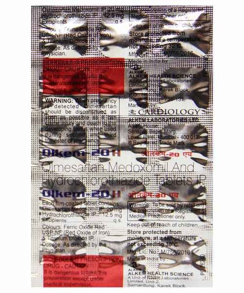 You can take Olkem 20H Tablet with or without food. The dose will depend on your condition and how you respond to the medicine. Try to take it at the same time each day. It is important to keep taking this medicine until your doctor tells you not to. It contains a diuretic (water pill) and will make you urinate more so, it is best to avoid taking this medicine within four hours of going to bed. Use this medicine regularly to get the most benefit from it even if you feel well. High blood pressure does not usually have symptoms and if you stop taking it your risk of heart attack or stroke may increase.