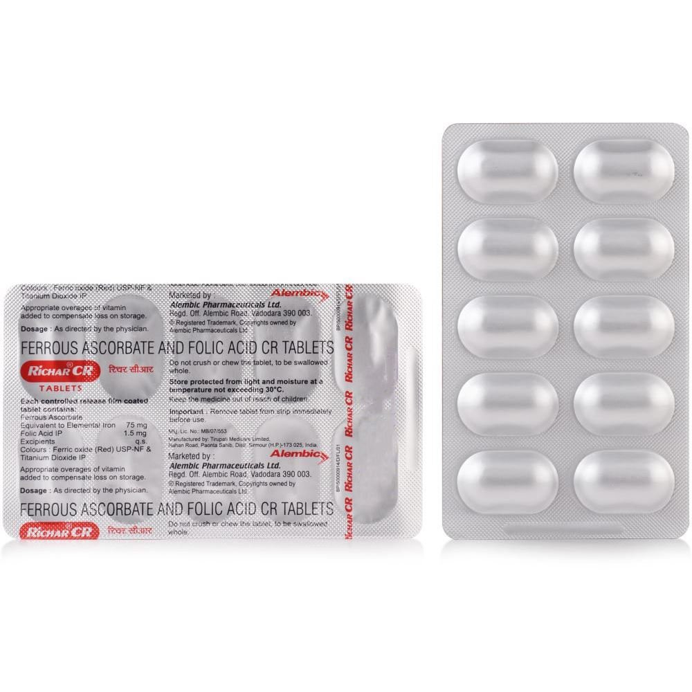 Richar CR 75 is a brand of Ferrous Ascorbate equivalent to elemental Iron 100 mg + Folic acid IP 1.5 mg 1.
