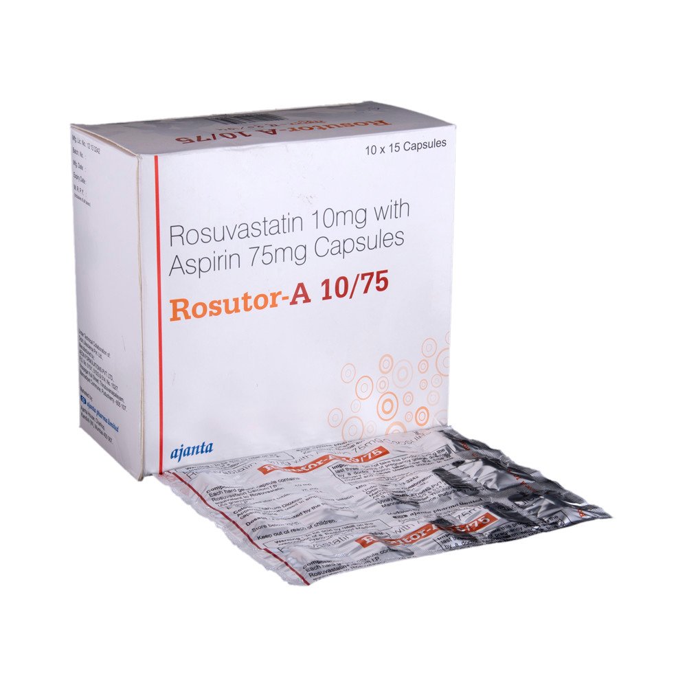 Rosutor-A 10/75 Capsule should be taken with food to avoid stomach upset. You should take it regularly at evenly spaced intervals as per the schedule prescribed by your doctor. Taking it at the same time every day will help you remember to take it. The dose and duration of treatment will depend on what you are being treated for. Do not stop taking it until you have finished the complete course, even when you feel better. Lifestyle changes like low-fat diet, exercise and not smoking may help this medicine to work better.