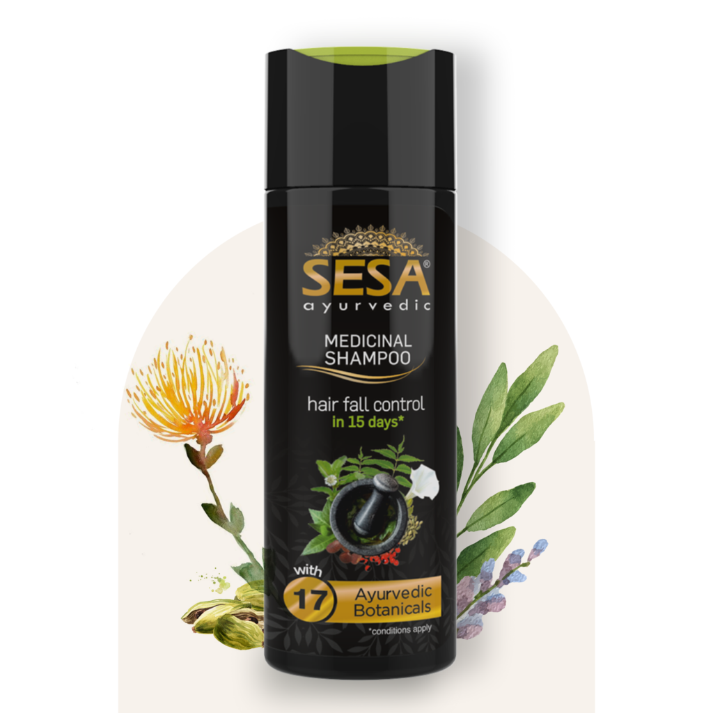 Sesa Ayurvedic Medicinal Shampoo is enriched with 17 nourishing herbs. It provides three benefits- therapy, relaxation and cleansing. SESA Ayurvedic Shampoo contains bhringraj, triphala, mehandi, jati and yashtimadhu that clean and maintain integrity of scalp and hair, and provides optimum nourishment and offer complete care. It is useful for prevention and treating dandruff, itchy scalp, infections and give smooth, silky and shiny texture with healthy hair.