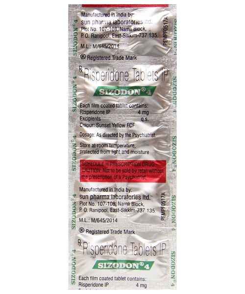 Sizodon 4 Tablet is taken with or without food, preferably at night. However, it is advised to take it at the same time each day as this helps to maintain a consistent level of medicine in the body. Take this in the dose and duration as advised by your doctor and if you have missed a dose, take it as soon as you remember. It is important that this medication is not stopped suddenly without talking to your doctor as it may worsen your symptoms. However, discontinue this medicine immediately if you experience Neuroleptic malignant syndrome (NMS), characterized by fever, muscle rigidity, and altered consciousness or seizures.