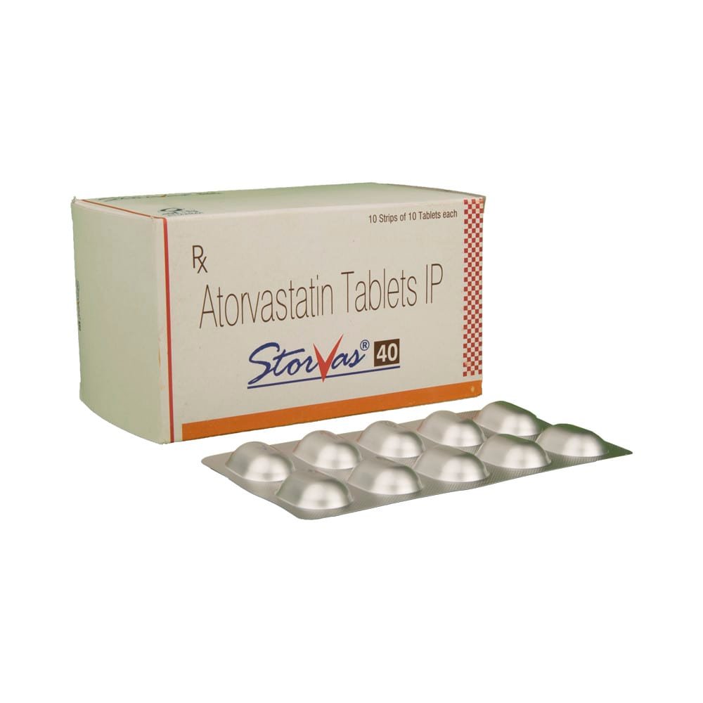 Storvas 40 Tablet belongs to a group of medicines called statins. It is used to lower cholesterol and to reduce the risk of heart diseases. Cholesterol is a fatty substance that builds up in your blood vessels and causes narrowing, which may lead to a heart attack or stroke.