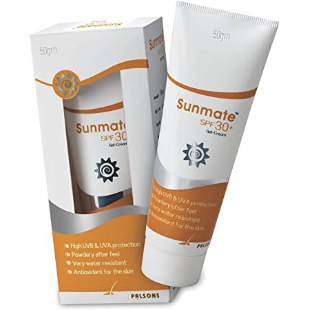 Sunmate SPF30+ Gel is the first in class sweat proof water resistant sunscreen in India. Sunmate SPF30+ Gel contains Ectoin, Butylene glycol, Propylene glycol, Triazine salts and crosspolymers of dimethicone and cyclopentasiloxane. It caters to a broad spectrum of sunlight and provides protection to the skin from both UV-A and UV-B sunlight. Additionally it provides anti-oxidants to the skin that help in delaying ageing.