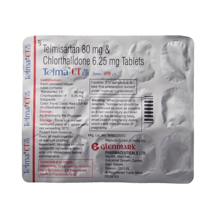 You can take Telma-CT 80/6.25 Tablet with or without food. The dose will depend on your condition and how your respond to the medicine. Try to take it at the same time each day. It is important to keep taking this medicine until your doctor tells you not to. It contains a diuretic (water pill) and will make you urinate more so, it is best to avoid taking this medicine within four hours of going to bed. Use this medicine regularly to get the most benefit from it even if you feel well. High blood pressure does not usually have symptoms and if you stop taking it your risk of heart attack or stroke may increase.