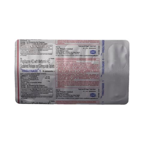 Triglynase 1 Tablet SR is a combination medicine that helps control blood sugar levels. This medicine is used together with diet and exercise to improve blood sugar control in adults with type 2 diabetes mellitus. It helps in proper utilisation of insulin, thereby lowering the blood sugar levels.