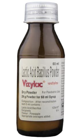 Vizylac Dry Syrup is a combination of Lactic Acid Bacillus with Vitamin B Complex & Zinc. It is used in Antibiotic Induced Diarrhoea / Infantile Diarrhoea.